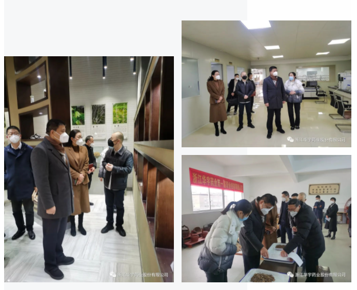 公司總經理蕭云南帶領顧局一行參觀了我公司富有特色、品種多樣的中藥標本展示廳,有“浙八味”展區、特色中藥炮制品區、